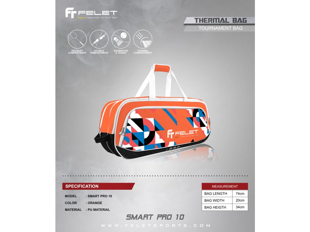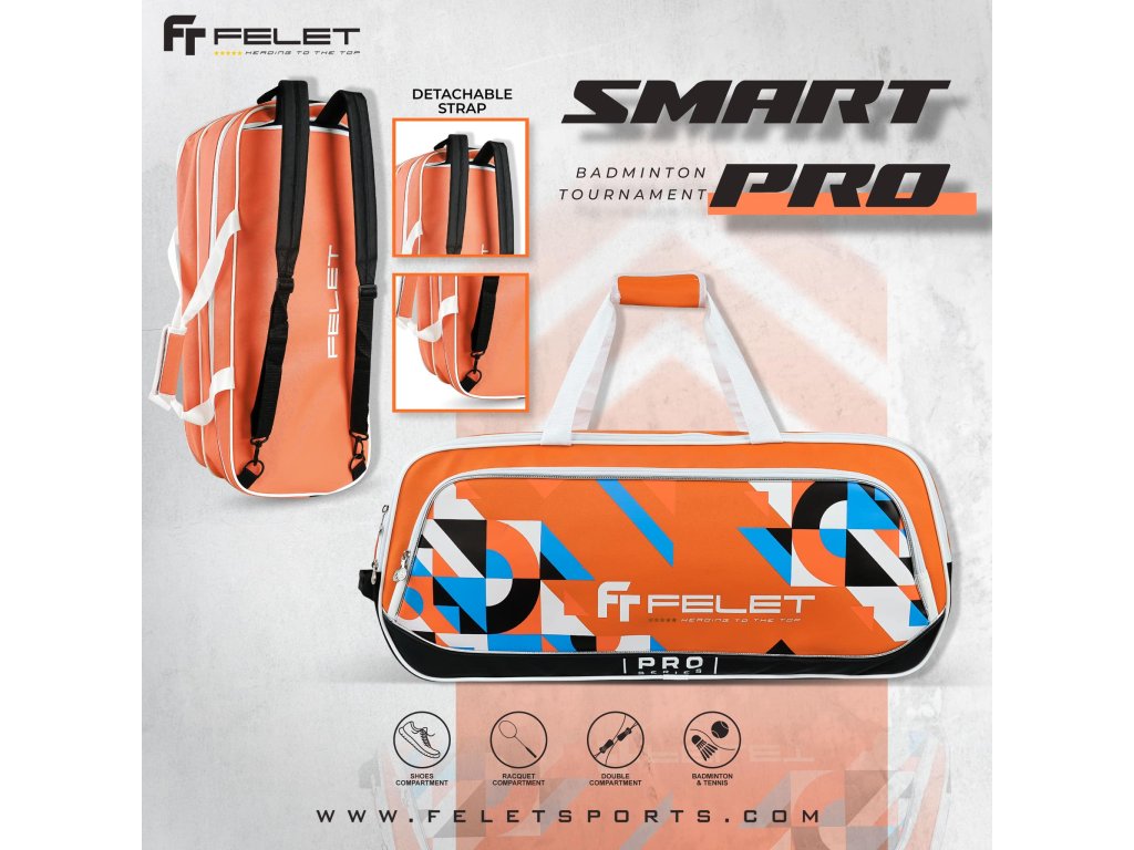 Darüber hinaus bietet die Felet Tournament Smart Pro Orange gut organisierte Fächer für Schläger, Schuhe und anderes Zubehör, sodass Sie alles an seinem Platz haben. Die ideale Wahl für Badminton und Tennis, egal ob Sie zu einem Turnier oder zum Training fahren.