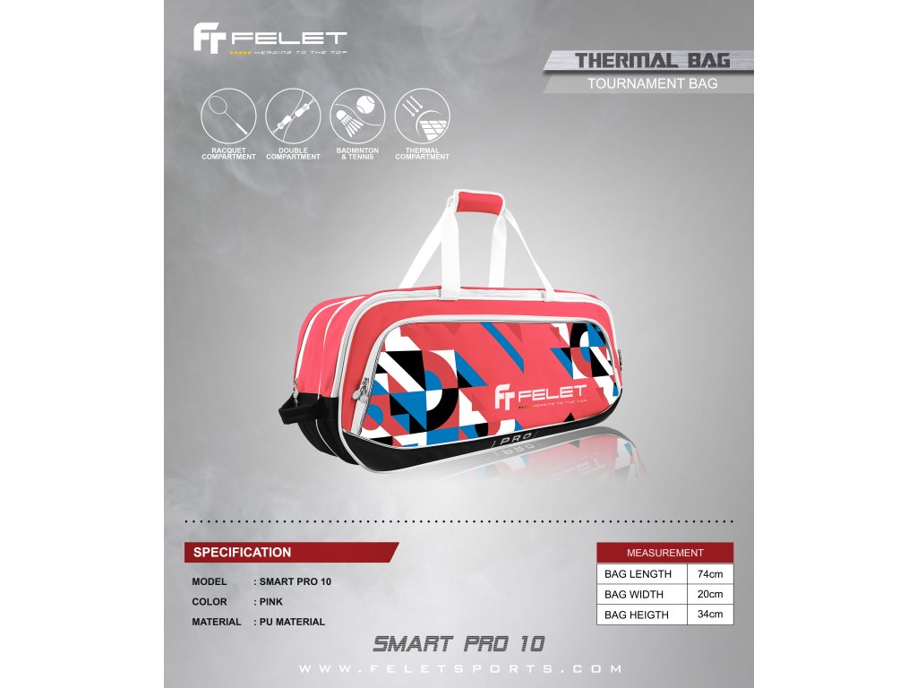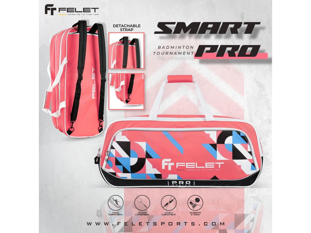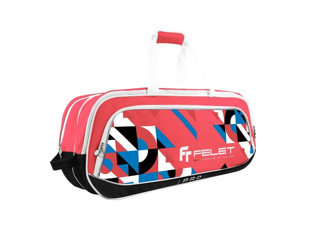 Badmintontasche Felet Tournament Smart Pro Pink ist die ideale Wahl für professionelle und Freizeitspieler, die eine stilvolle und praktische Tasche suchen. Ihr elegantes pinkes Design mit modernen geometrischen Mustern macht sie sowohl auf als auch abseits des Platzes attraktiv.