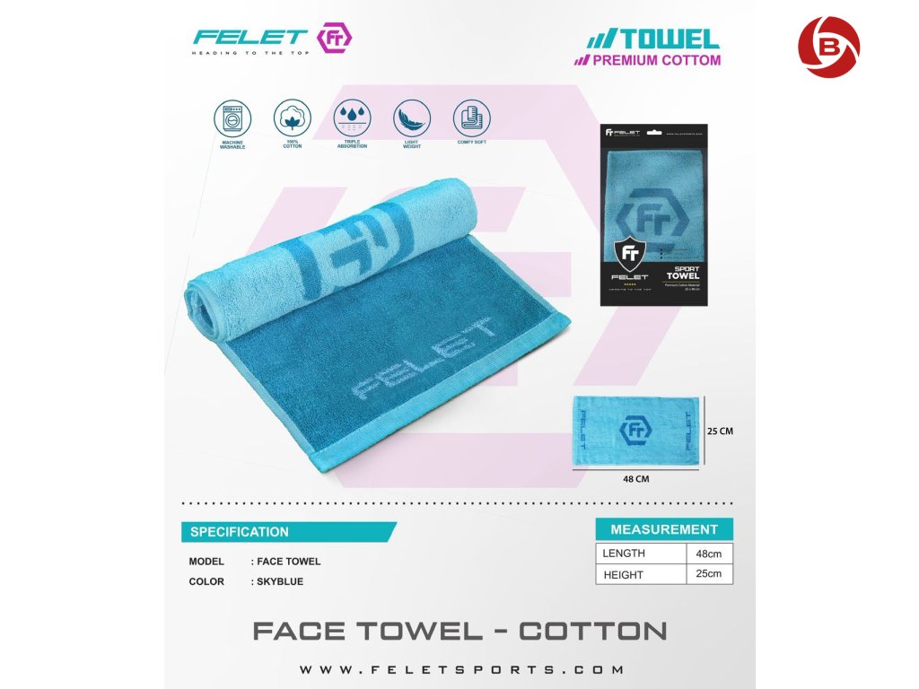 Felet Face Towel Sky Blue is a high-quality sports towel made from a premium cotton blend, designed for maximum comfort and functionality. Thanks to its combination of high absorbency and fast-drying properties, it is an ideal choice for badminton, tennis, fitness and other sports activities.