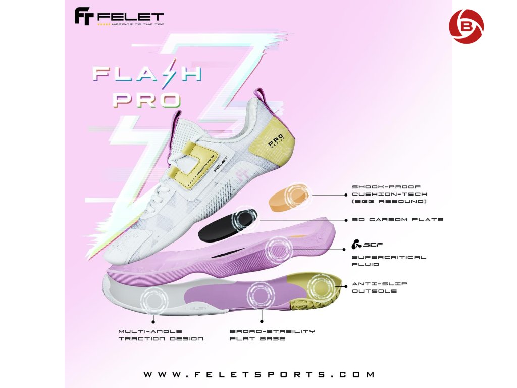 Felet Flash Pro Pink indoor shoes are top-quality badminton shoes designed to provide perfect performance, stability, and comfort during play. They combine modern and attractive design with advanced technologies that are key for peak sports performance.