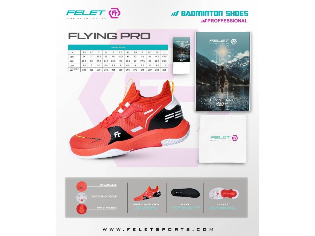Felet Flying Pro V2 Red is an ideal choice for players seeking professional badminton shoes with modern design, top-level stability, and high comfort. This color version stands out with its technical appearance and timeless color combination suitable for tournament use.